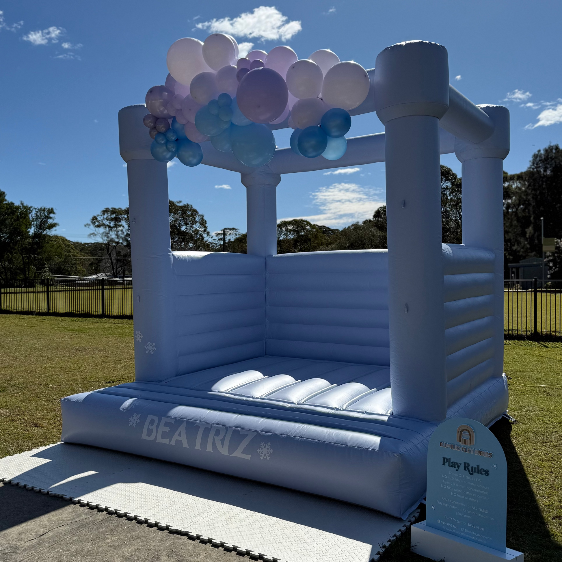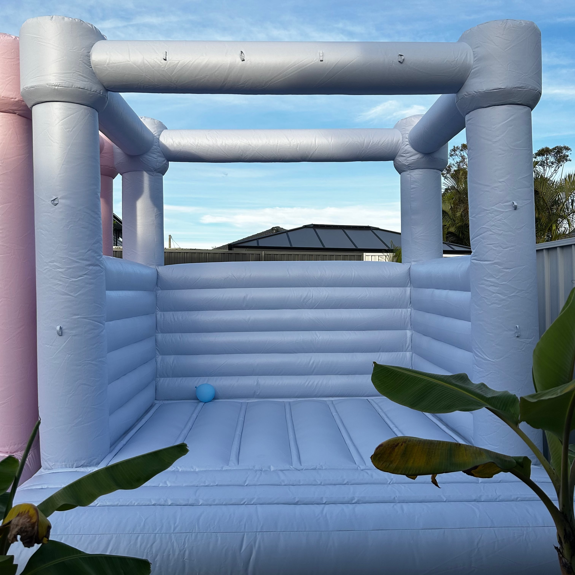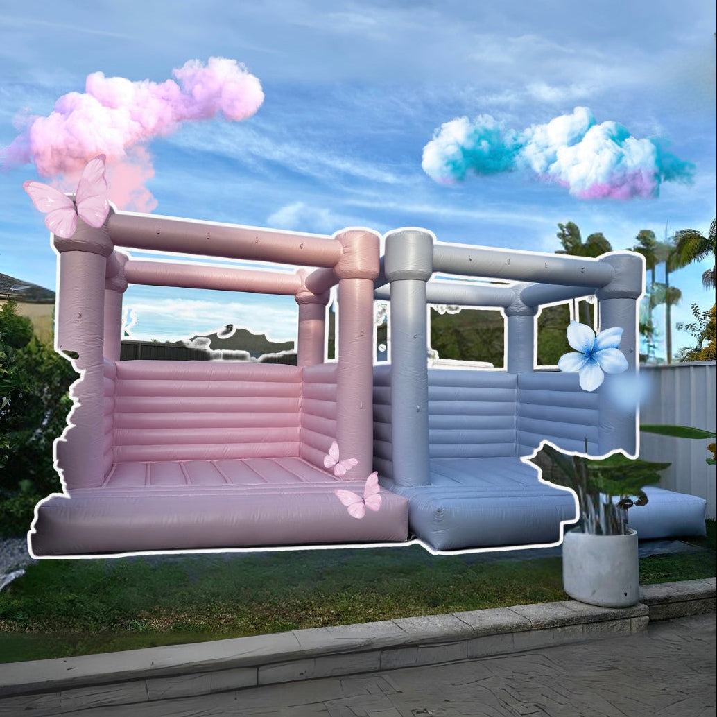 Create a dreamy play space with the Valora Castle — a beautiful 3x3m inflatable available in soft baby pink and classic baby blue.
